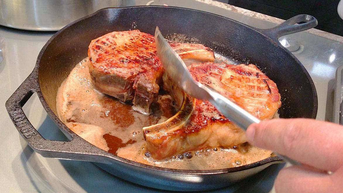 Often done with fancy "sous vide" machines and vacuum bags, this technique has been happening for decades now. For today's purpose, a simple pork-loin chop, we can accomplish this with items found in everyone's kitchen: an oven and a cast-iron skillet.
