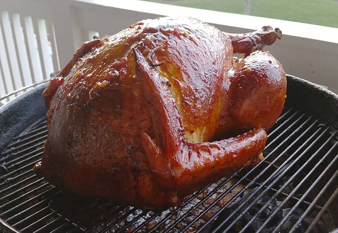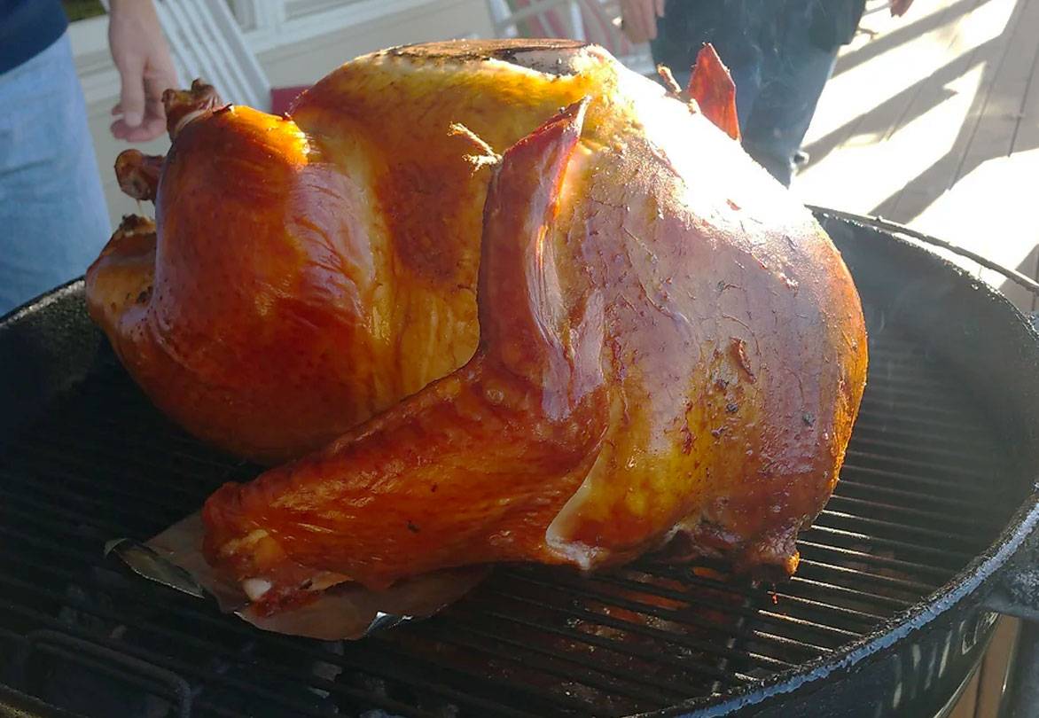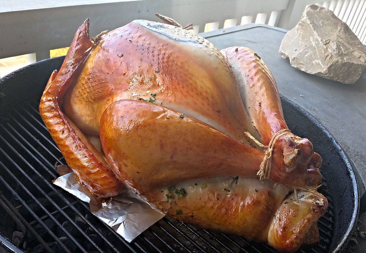 There is no question that the tried and true Weber Kettle grill is the king of Turkey cookers. It's reasonably priced, lightweight, and provides a perfect convection environment. Using the indirect method (and those fancy Weber charcoal baskets if you have them), get the grill rip roaring hot with the vents wide open. We even like to line up coals like little soldiers at the front and rear of the bird, for extra even cooking.