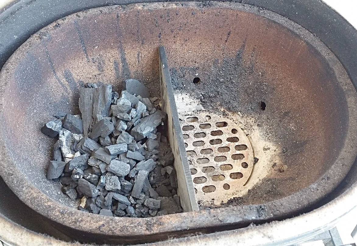 Set up a two-zone fire. I use a Primo ceramic cooker, which does two-zone cooking like a boss. If you're using gas, fire up one side of the grill to high, and leave the other side off. If you're using another charcoal grill, you're going to have to figure out a way to bank your coals to one side so that they approximate this: