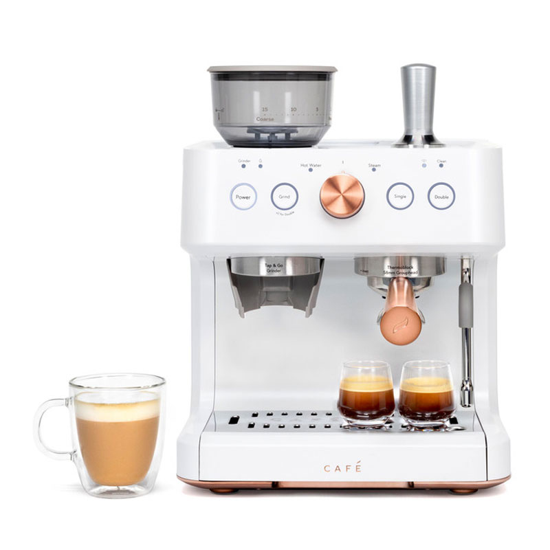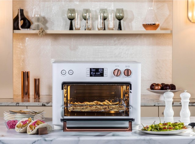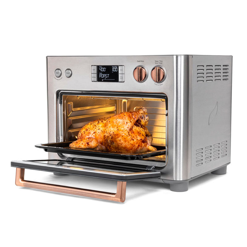 GE Café carries a stylish line of countertop appliances that work well in small and/or design-focused spaces. The GE Café Couture Oven with Air Fry and Copper Accents does wonders as a countertop appliance. With finish/color options such as stainless steel and matte white, the Café Oven and Air Fryer fits well with existing appliances in the kitchen. Many features make up this unique countertop appliance including 14 different cooking modes like CrispFinish, Bake, Broil, Roast, Toast, Bagel, Pizza, Cookies, Proof, Dehydrate, Slow Cook, Reheat and Keep Warm. Ability to accommodate 12" pizzas, 9" x 13" cake pans, 2 qt. casserole dishes and more in a spacious cooking cavity that's sized for party-style fare, this makes for a fun gift during a gathering!