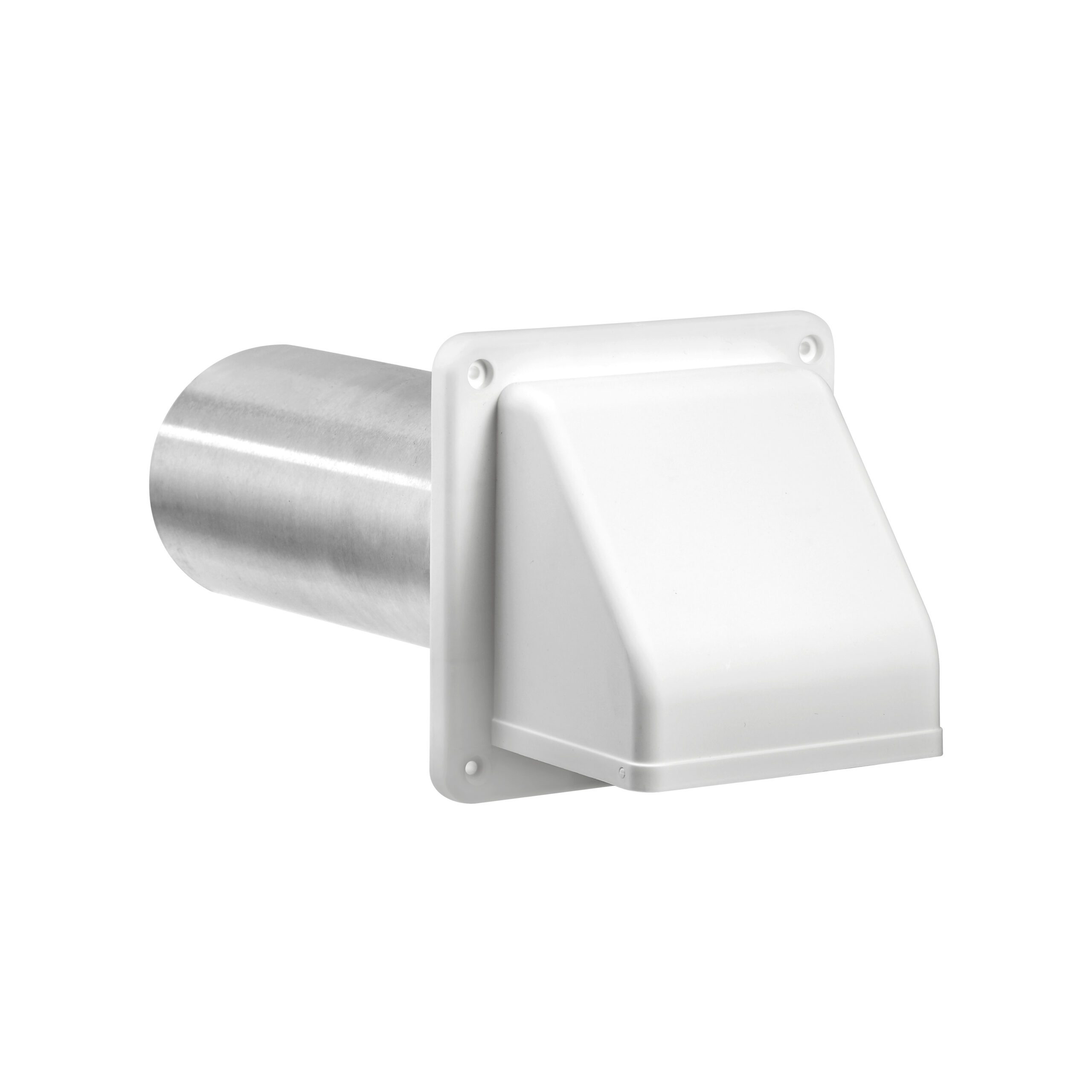 The Lambro 4-inch white plastic exhaust hood vent with an 11-inch pipe is ideal for venting through the wall. You can easily use the exhaust vent for new and replacement installations over an existing 4-inch opening. The vent frame comes with four screw holes to secure the vent and a caulk-friendly frame for completing the installation.