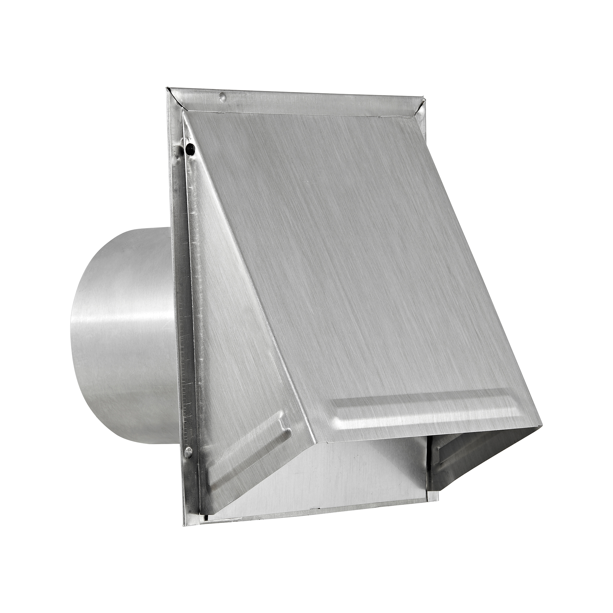 The 6-inch aluminum exhaust wall hood vent with 6-inch pipe is ideal for venting through the wall. This vent is used for bath fan exhaust, range hood exhaust, and other general venting applications where exhaust air needs to exit to the exterior. The exhaust vent allows maximum airflow using a spring-controlled damper that prevents back drafts. Made from 22 gauge aluminum for durability and will not rust to maintain longevity. Check local building codes before installation.