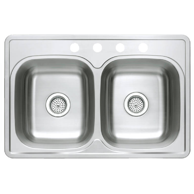 33" x 22" 50/50 double bowl top-mount, 304 stainless steel